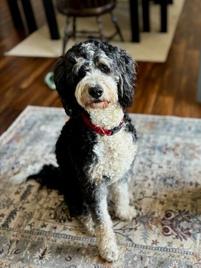 Stella, our loving Standard F1 Bernedoodle, is truly a cherished member of our family. She spends her days lounging in the living room, keeping a watchful eye on the household, or playing in the yard with the kids and her doodle sisters. With her warm and friendly personality, Stella greets everyone she meets with affection. She has a calm, gentle temperament and enjoys simple pleasures like walks and car rides. Her sweet spirit brings so much love to our home.
